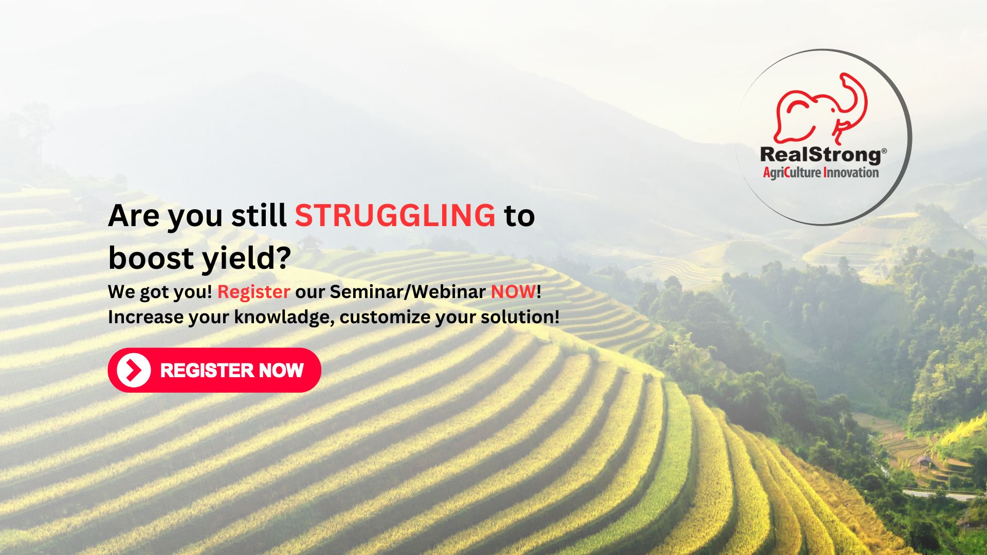 Enhance your agricultural expertise with All Cosmos Industries Sdn Bhd’s RealStrong Fertilizer webinar and seminar series. Gain actionable insights from industry experts on optimizing crop yields, improving soil health, and achieving sustainable growth. Join us to transform your farming practices and drive success!